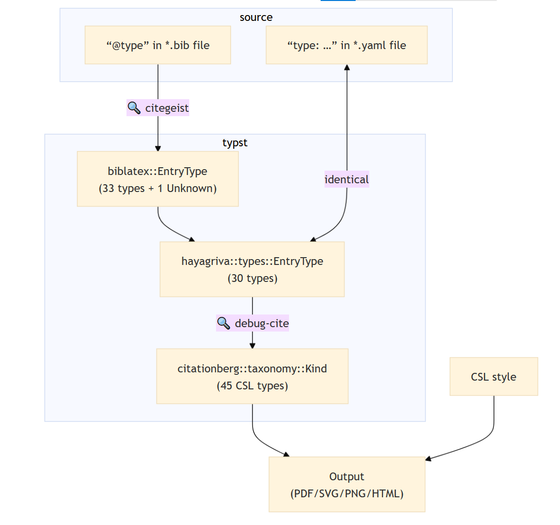 -->|🔍 debug-cite| citationberg["citationberg::taxonomy::Kind<br>(45 CSL types)"]