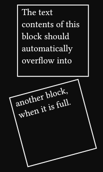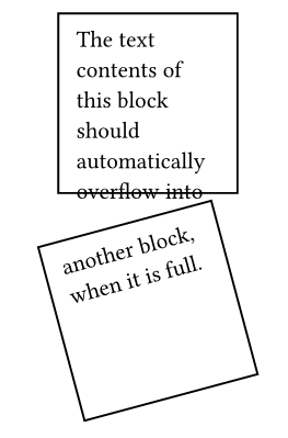 #two-boxes("The text contents of this block should automatically overflow into another block, when it is full.")