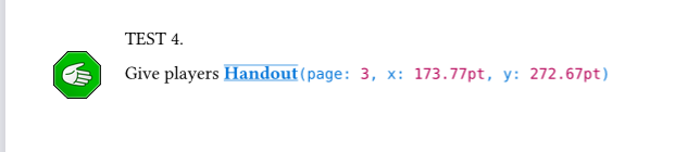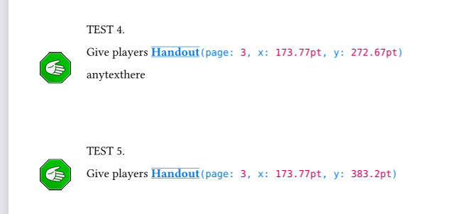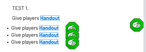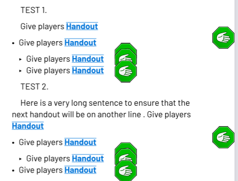 The first line leaves the handout icon significantly below the triggering text. For the remaining lines, the icon appears immediately after the text, not in the margin.