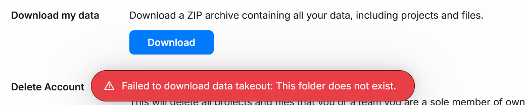 Failed to download data takeout: This folder does not exist.