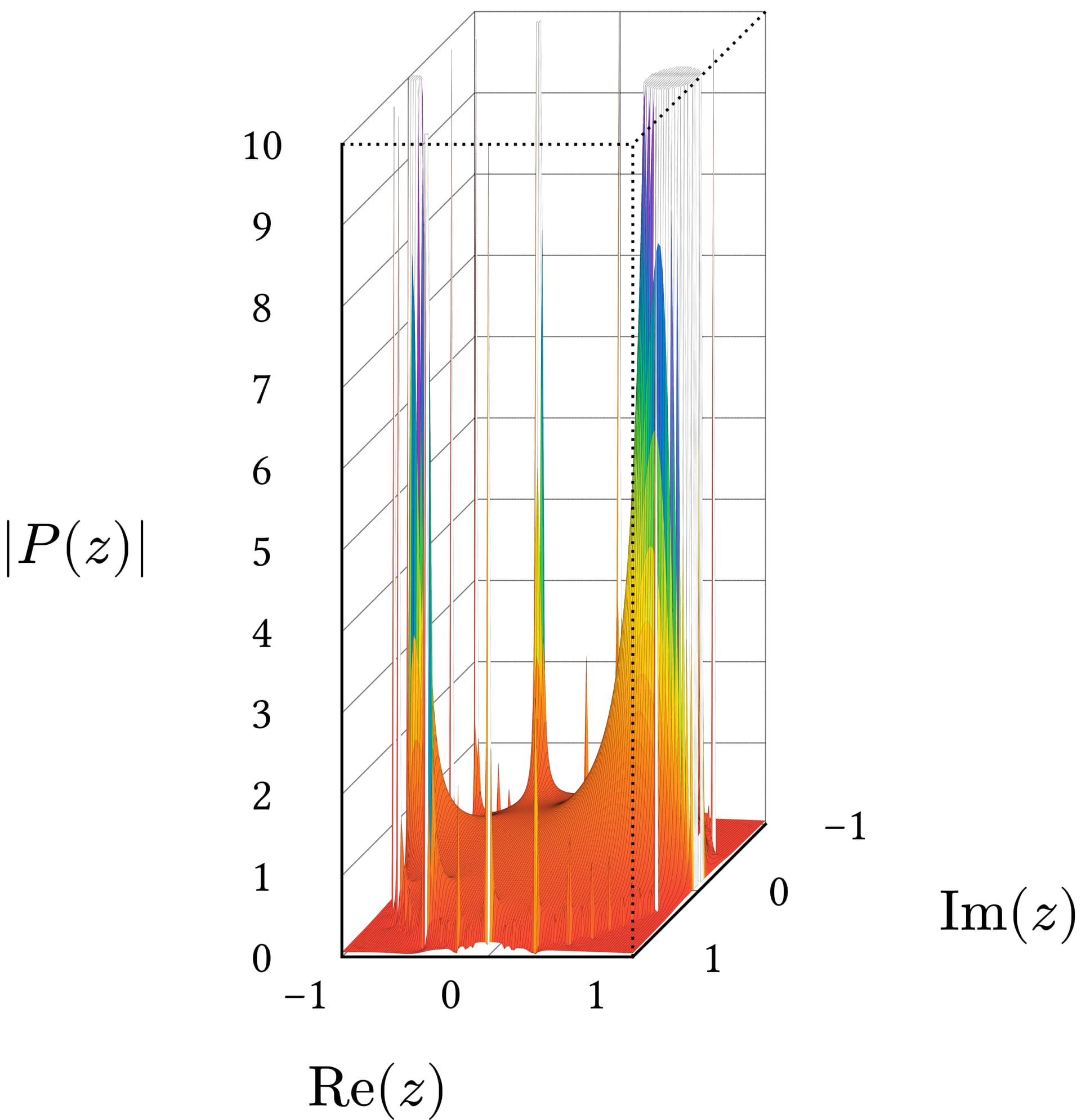 axis-labels: ([$"Re"(z)$], [$"Im"(z)$], [$|P(z)|$]),