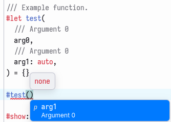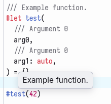 For more complex project, I recommend following the documentation syntax of tidy – Typst Universe and generating a documentation PDF. This allows using full typst syntax in the descriptions, showing examples, expected types, etc.