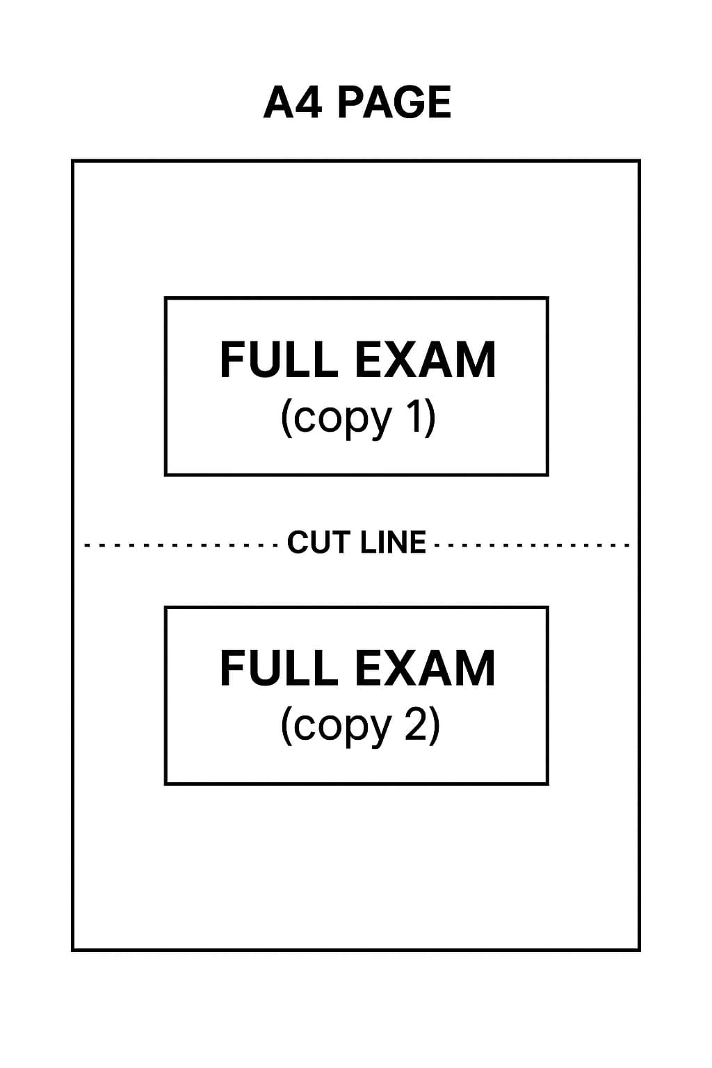 I want to print the same full exam page twice on one A4 sheet, like teacher slip-cut handout sheets.
