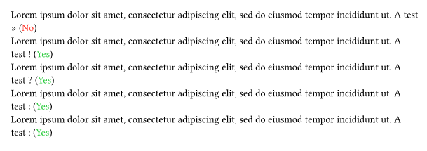 In the french typography rules, some characters have unbreakable spaces before them and normal spaces after. So for instance : should be (in typst) ~: . You might see the issue that it can becomes quickly long to deal manually with that for every of these characters.