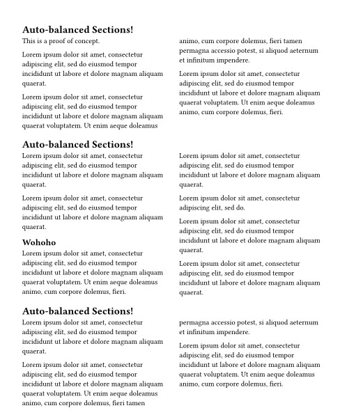 Addendum: You could probably write a document show rule (#show: document=> {}) that automatically groups paragraphs together into columns, but i haven’t gotten the energy to figure out how rn ↩︎