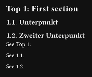I want my top levels headings be numbered like this “TOP 1: First Name”, “TOP 2: Second name”, but my second level headings just “1.1 first subsection”, “1.2 second subsection”.