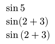 When I write a prefix mathematical function (specifically an op) (like sin) applied to a literal number, it is shown with a space between the function and the operand. But, when I write the function applied to an expression in parentheses, there is no space between the function and the operand. That is shown in the example at the end.