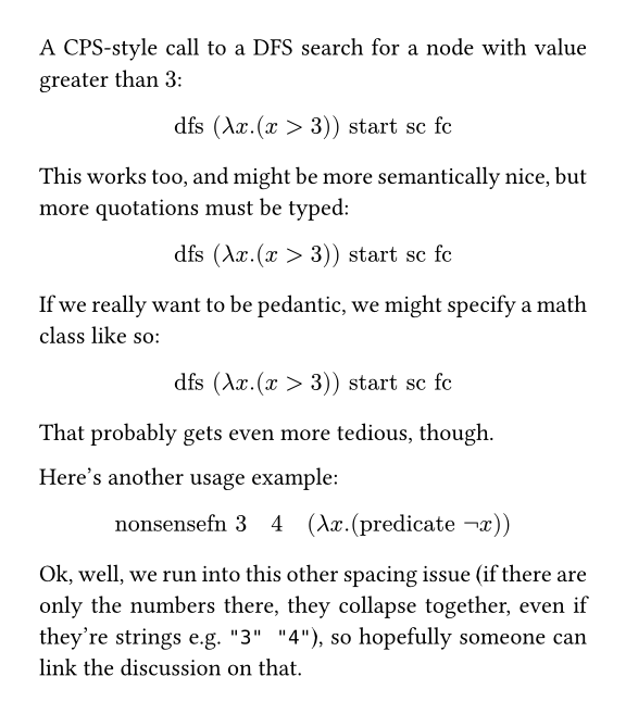 How can I keep the space between the function and the operand when the operand is an expression in parentheses? The idea is that the the literal number and the expression in parentheses mean the same thing, so they should be treated the same way in the notation. That would be useful for a Haskell-like notation where functions are applied by juxtaposition, not by parentheses.