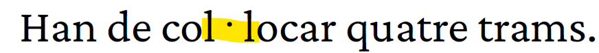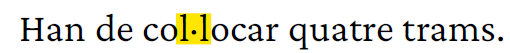 Catalan language uses a special double l called ela geminada (l·l). Example: “col·locar” (it means “to place”).