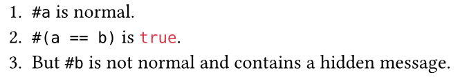 #let b = [#show "normal": it => "not normal and contains a hidden message";normal]