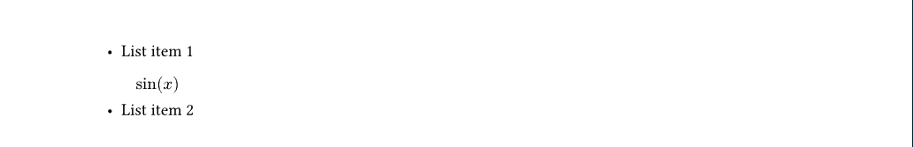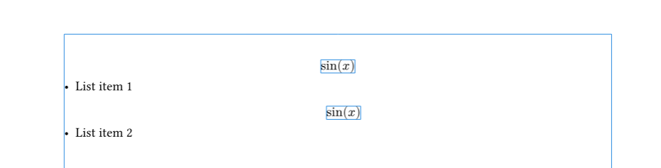 But the example also shows that because of the indent, even a full width list centers the equation slightly differently than the equation before the list.