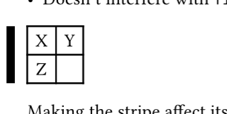 Making the stripe affect its surroundings, like for reasons such as not being ignored in centring the table, is possible by changing outset to inset. Though really that change only counts in the inset amount, not also the actual stripe thickness which you would have to add manually. It’s a similar situation with stripe’s height which doesn’t change with the line thickness of the table.