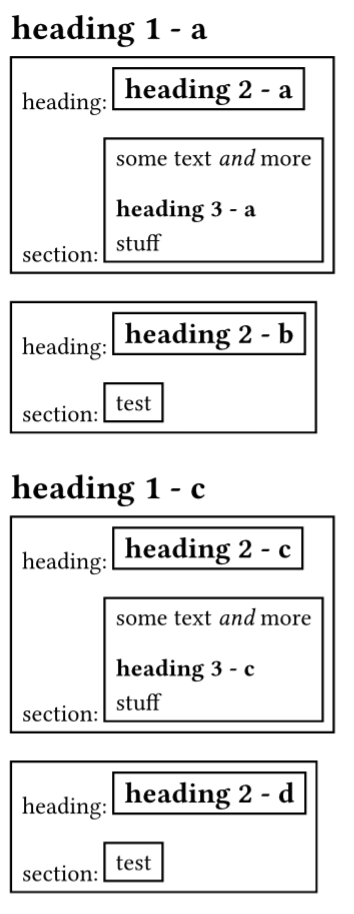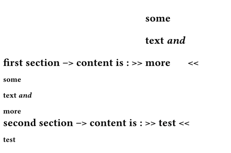 And a more interesting example that demonstrate how manipulate both the heading and the content of the section level you want to format: