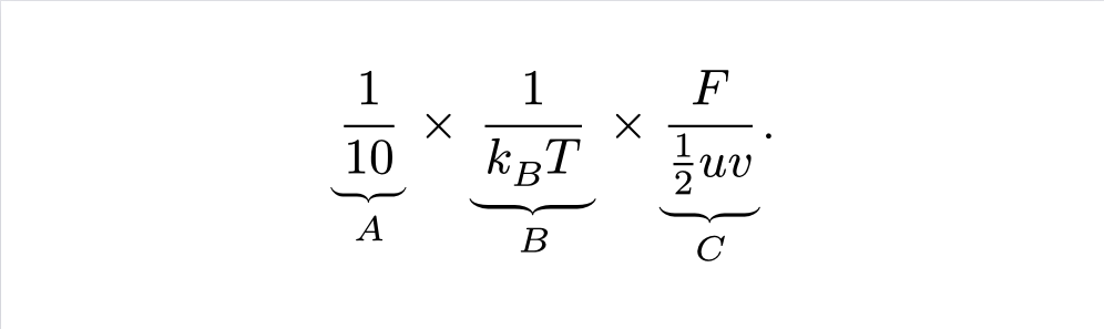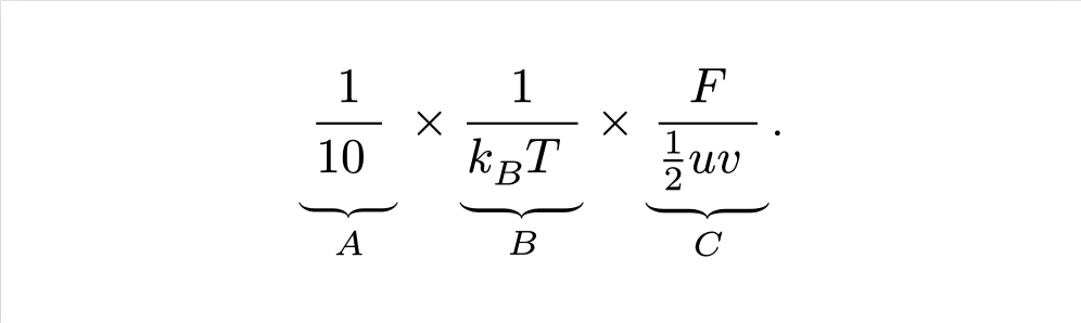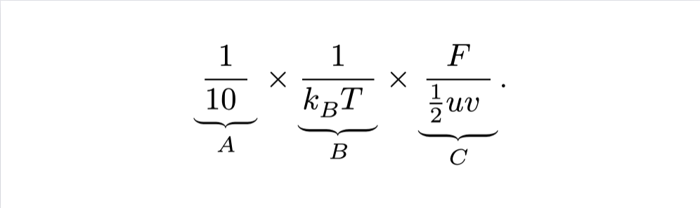 They’re just placeholder contents. In my actual formula, the k_B is k_"B", and the B in the under brace is "noise". I’ve removed all "…" to make the example simpler.