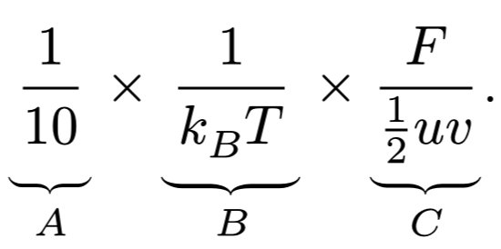 underbrace(1 / (k_B T vphantom(1/2)), B) times