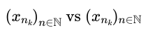 $(x_(n_k))_(k in NN)$, $(x_n)_(n in NN_0)$