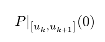 $ evaluated(P)_[u_k, u_(k+1)](0) $