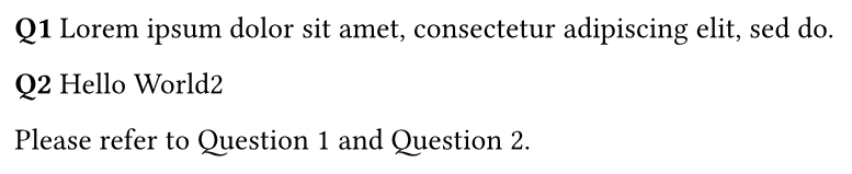 What I want instead is a single continuous question numbering sequence across all sections (e.g., Section A has Q1–Q10, Section B continues with Q11–Q20, etc.), without redefining every counter manually.