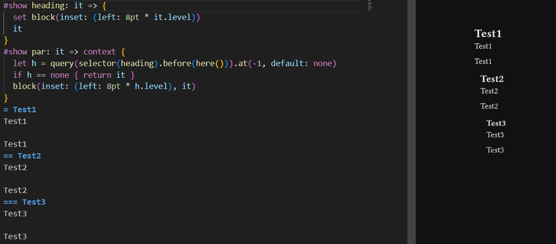 I’m working on my template project, AbyssBook (GitHub - CrossDark/AbyssBook: A dark template for typeset), and I want to indent headings and the corresponding paragraphs based on the heading’s level. The deeper the heading, the more indented it will be.