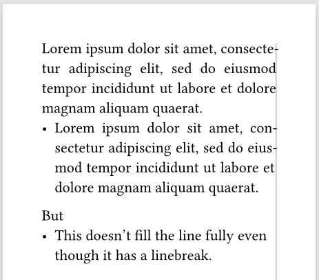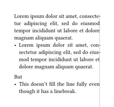 - This doesn’t fill the line fully even though it has a linebreak.