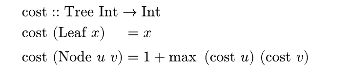 & "cost" ("Node" u" "v) & & = 1 + max" "("cost" u)" "("cost" v) \