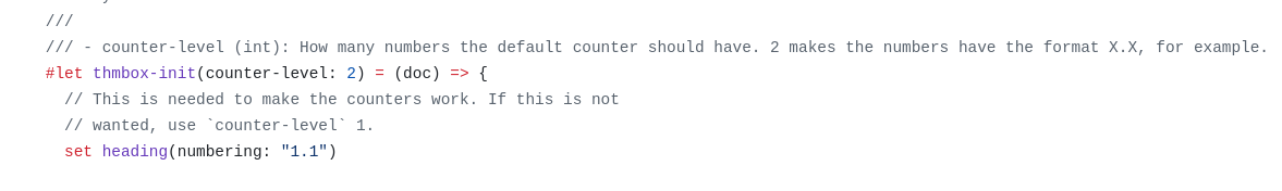I’m new to typst but using #set heading(numbering: none/“1.”) doesn’t seem to do anything. It only happens after the thmbox-init() function from the package that sets the heading numbering to X.X using that same function: