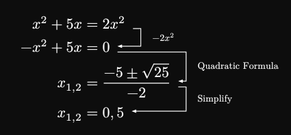 x^2 + 5x & = 2x^2 #mark-line(<a>) \