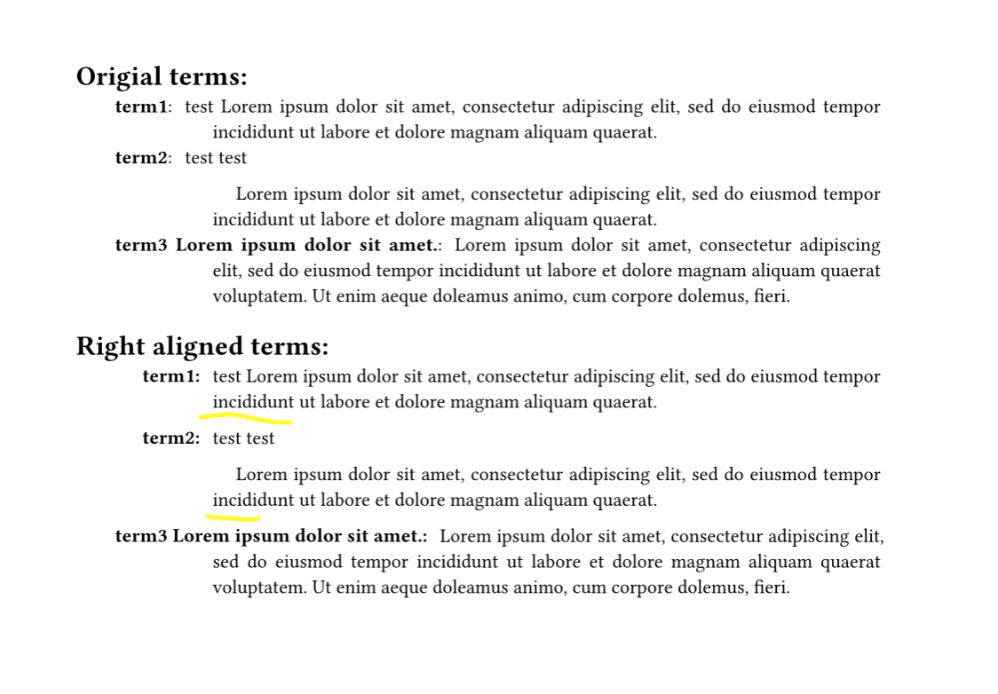 The picture in a previous bdr post provided the necessary context for me, for one, for example it provides an interpretation what right aligning terms means and how to handle too-long terms. (We could squint and see that we have one “column” of terms, right-aligned, standing against one “column” of descriptions, left-aligned.)