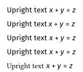 $text(font: "Libertinus Serif", "Upright text") x + y = z$