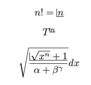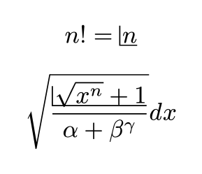 $ sqrt(oldfact(sqrt(x^n) + 1) / (alpha + beta^gamma)) d x $