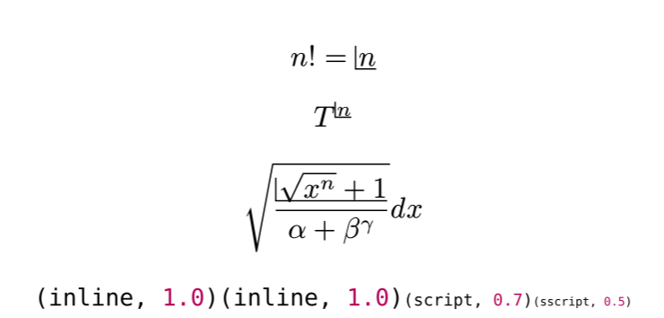 $ display(cont) inline(cont) script(cont) sscript(cont) $