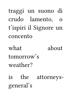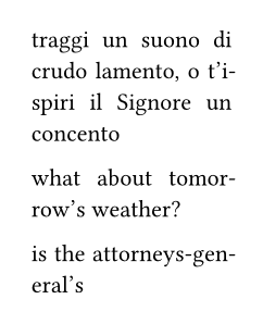 In my mind, it should instruct typst that those are two distinct words and that it can’t break after the apostrophe; well, no, it still does no hyphenation.