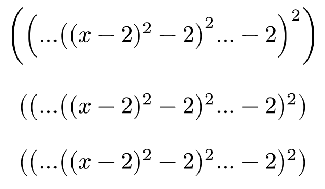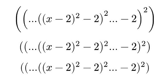 $lr((lr((...lr((lr((x - 2), size: #auto)^2 - 2), size: #auto)^2... - 2), size: #auto)^2), size: #auto)$
