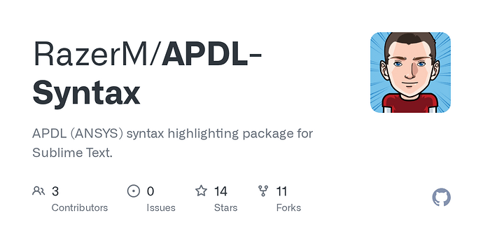 a) Does anyone have an “APDL.sublime-syntax” for me?
