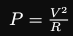 $P = V^2/sq(R)$