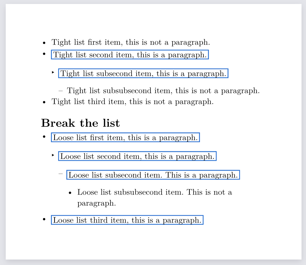 - Why do list/enum items become paragraphs when they have children? Is there a good reason for this or is it a bug?