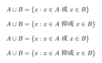 $ A union B = {x : x in A "抑或" x in B} $