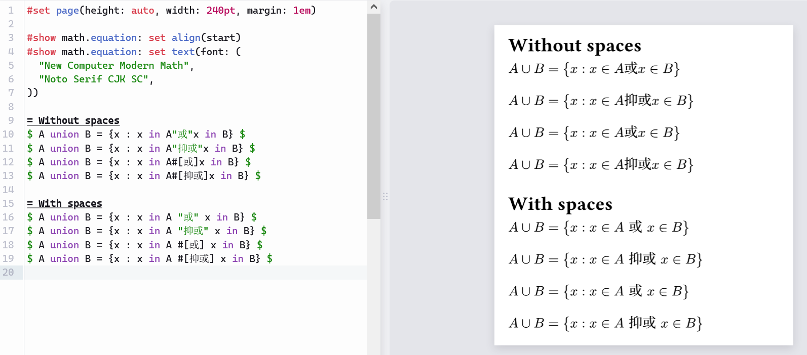 $ A union B = {x : x in A#[或]x in B} $