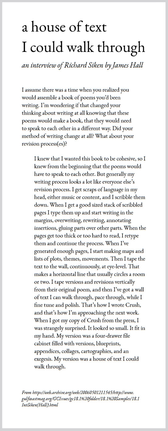 #text(size: 0.19in, style: "italic")[an interview of Richard Siken by James Hall]