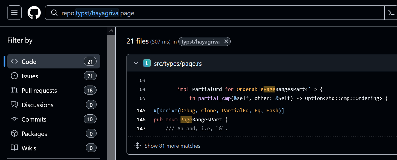 Additionally, GitHub search is biased towards code and requires special notations to search for docs.