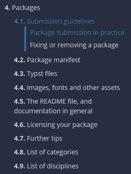 - Snapshots of the official Typst Documentation are also stored here, for reading offline or using previous versions.