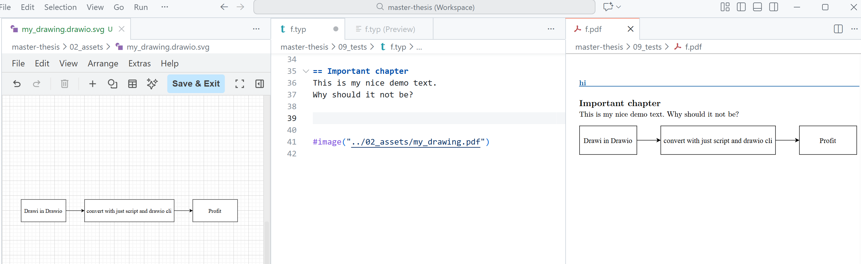 A key issue: SVGs exported by drawio don’t render correctly in Typst-generated PDFs. (Important: they look fine in the preview, but the final PDF is where things break.)