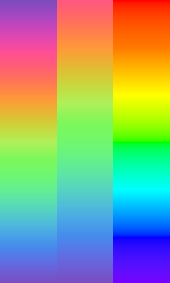 So imo there are two sensible choices: make an optical rainbow from red to violet, or a visual rainbow from magenta to magenta.